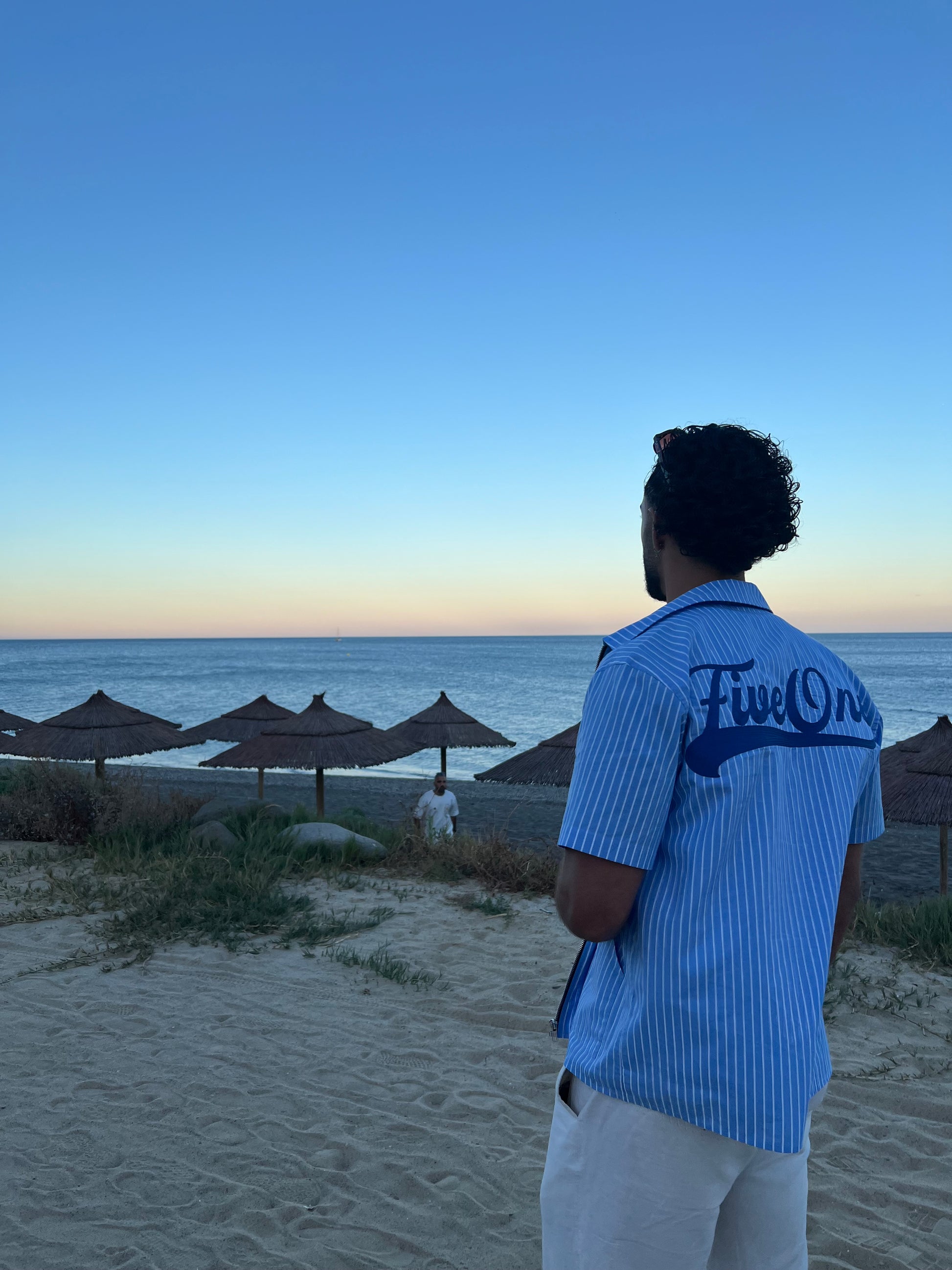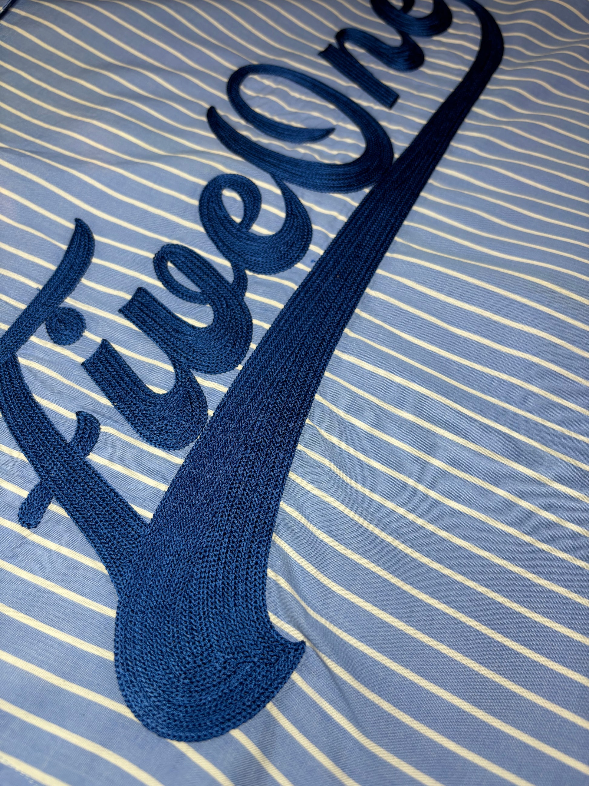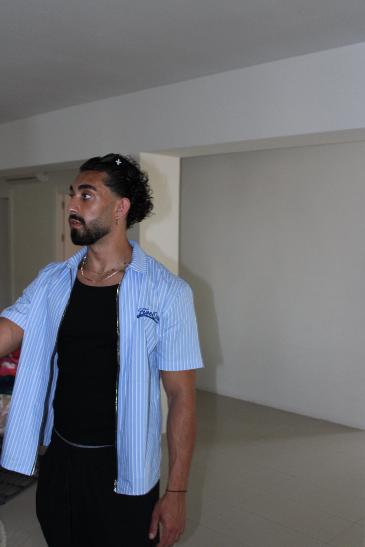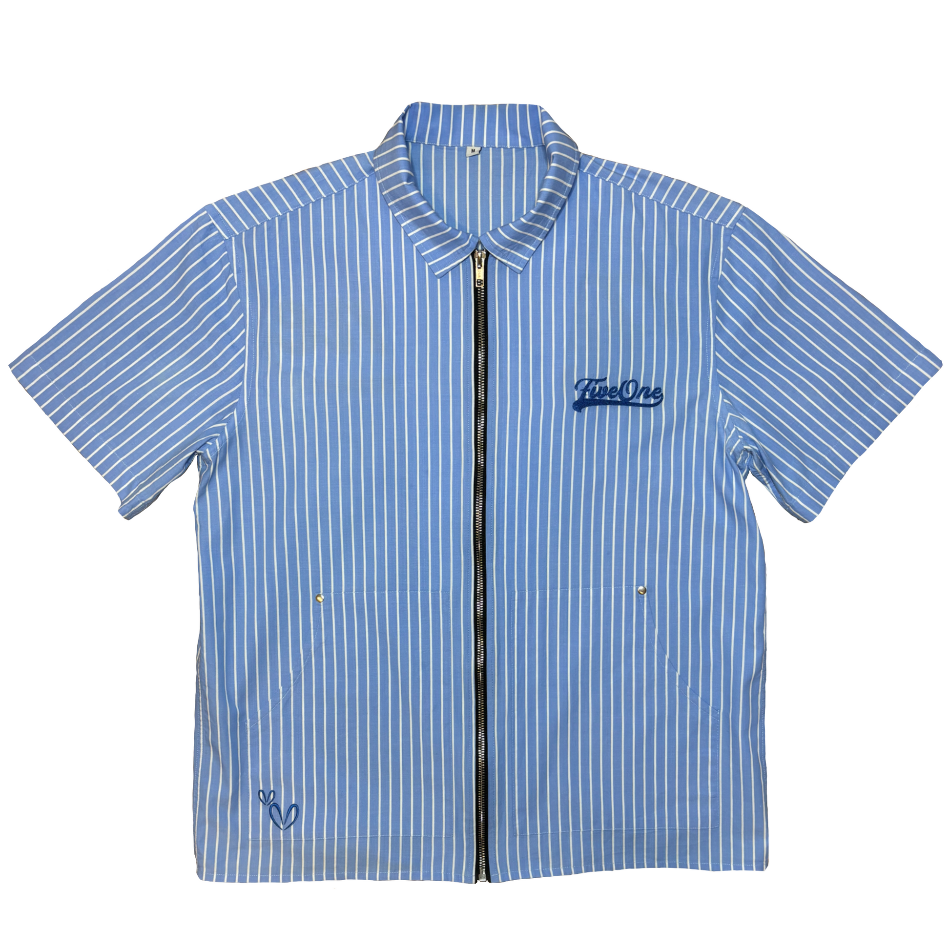 100% Cotton, Pin Striped Over Shirt with Zip and Chain Switched Embroidery Logos to Chest & Back.
